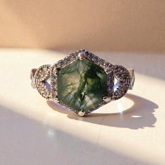 Moosachat Silber-Ring ❤︎ Gr. 9.5