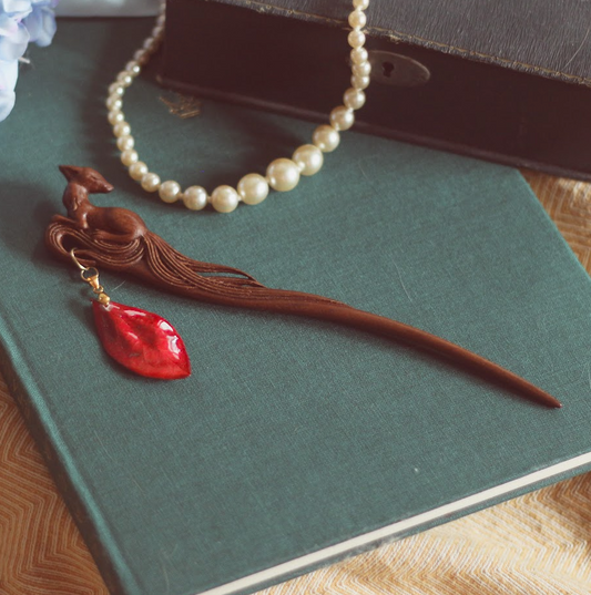 Blaubeerblatt und Reh❤︎ Haarnadel