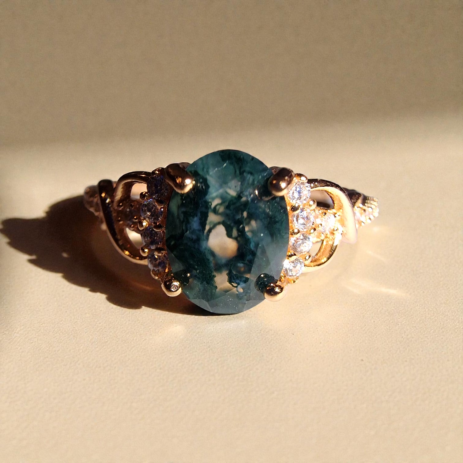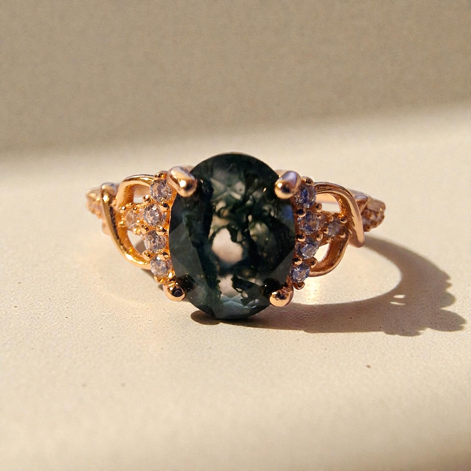 Moosachat Silber-Ring ❤︎ Gr. 6 in Rosegold-Optik