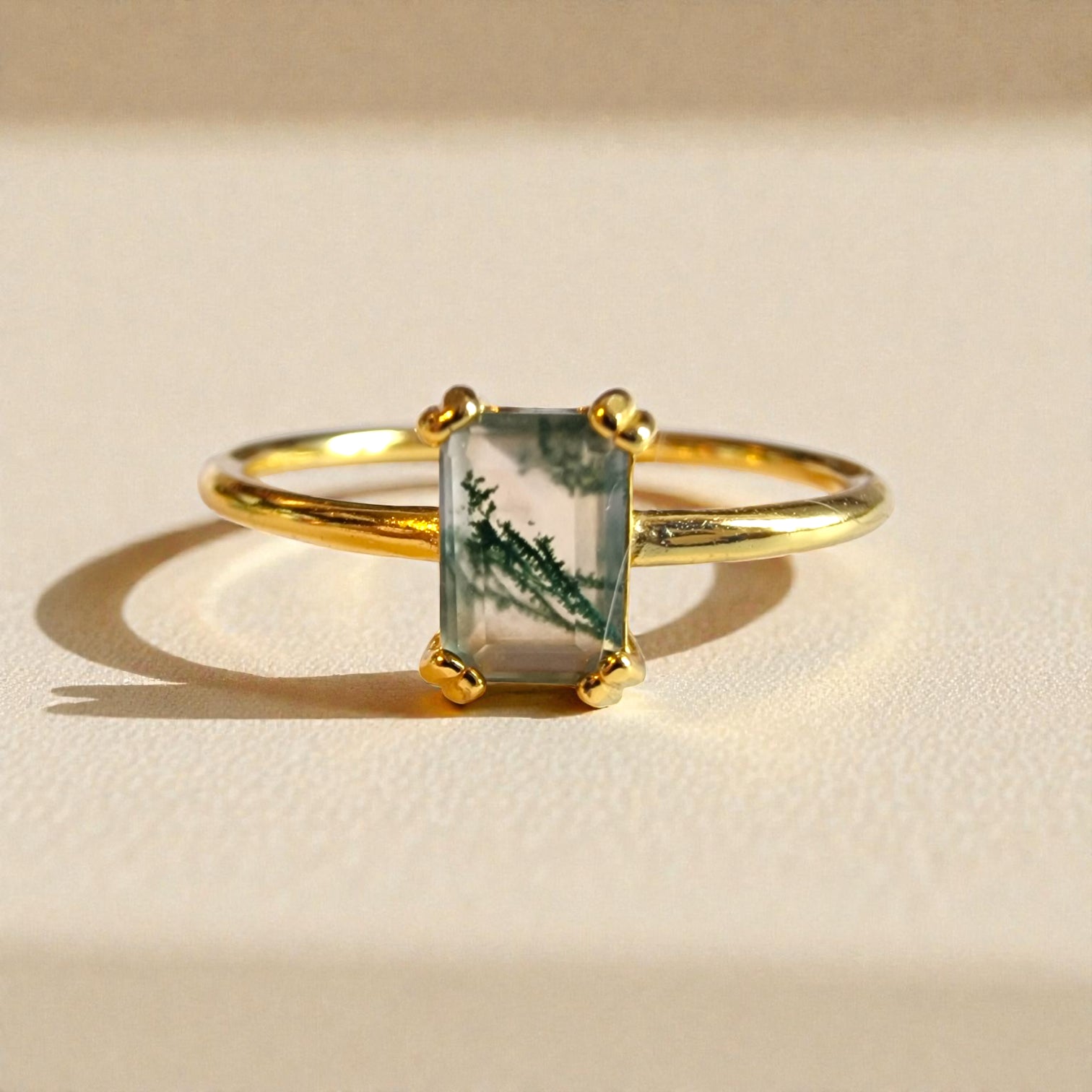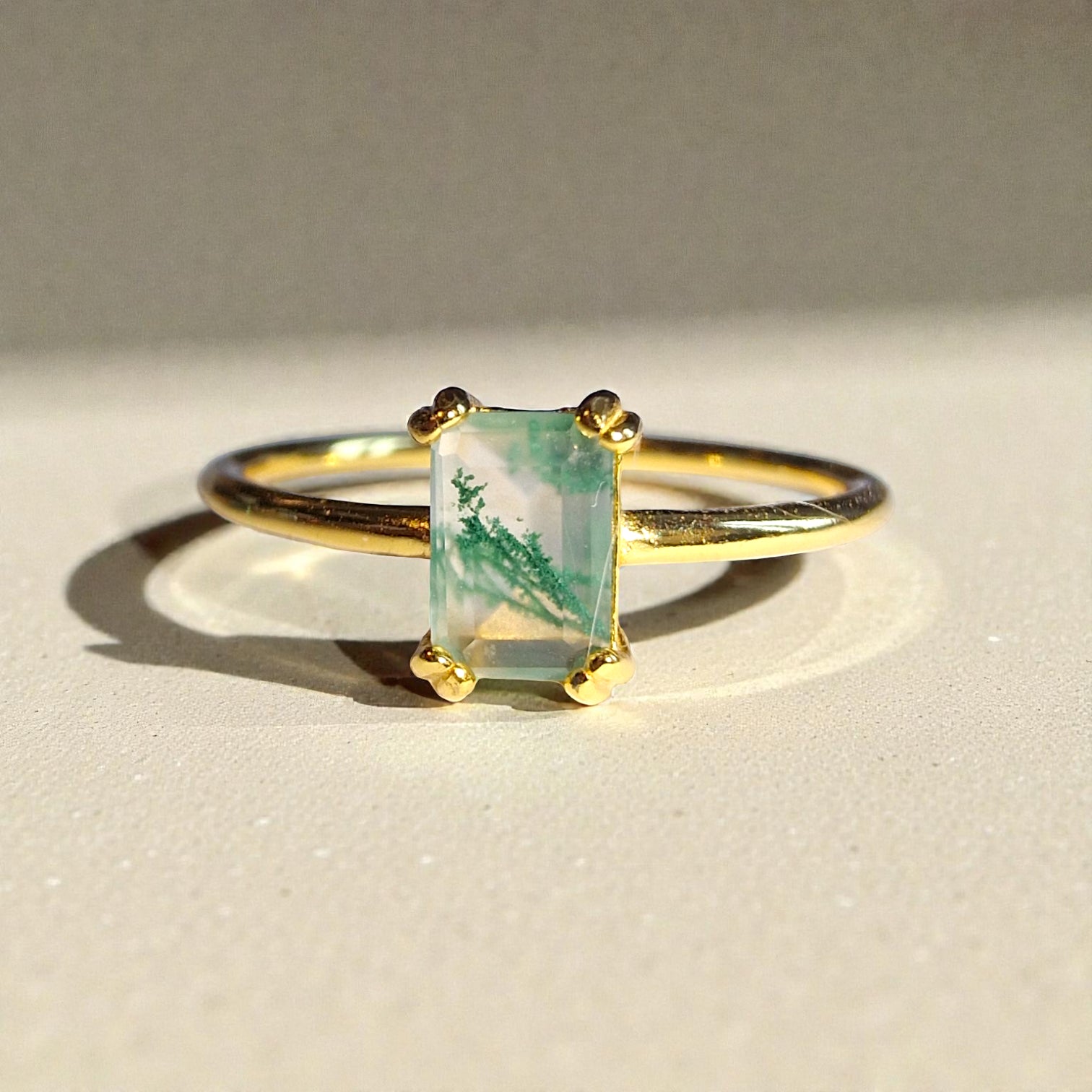 Moosachat Silber-Ring ❤︎ Gr. 7 in Gold-Optik